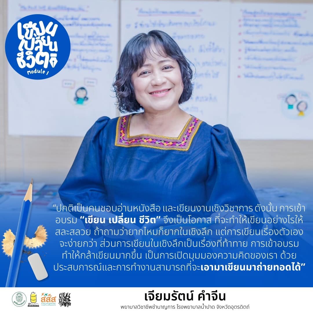 เขียน เปลี่ยน ชีวิต – เจียมรัตน์ คำจีน “ปกติเป็นคนชอบอ่านหนังสือ และเขียนงานเชิงวิชาการ ดังนั้น การเข้าอบรม “เขียน เปลี่ยน…