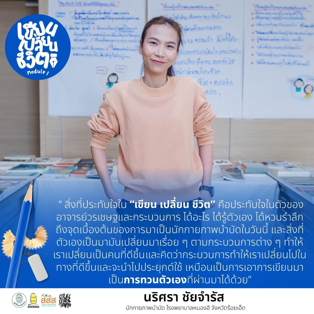 เขียน เปลี่ยน ชีวิต – นริศรา ชัยจำรัส “ สิ่งที่ประทับใจใน “เขียน เปลี่ยน ชีวิต” คือประทับใจในตัวของอาจารย์วรเชษฐและกระบวนการ…