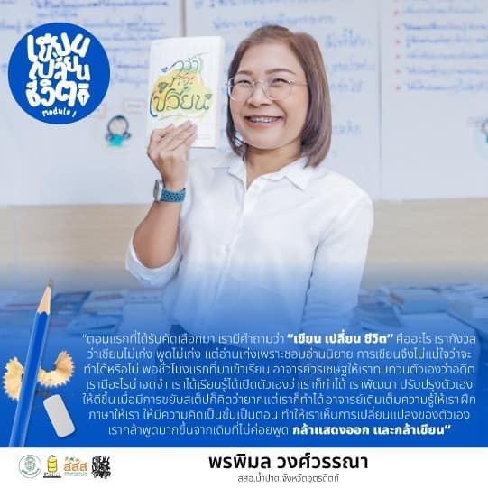 เขียน เปลี่ยน ชีวิต – พรพิมล วงศ์วรรณา “ตอนแรกที่ได้รับคัดเลือกมา เรามีคำถามว่า “เขียน เปลี่ยน ชีวิต” คืออะไร…